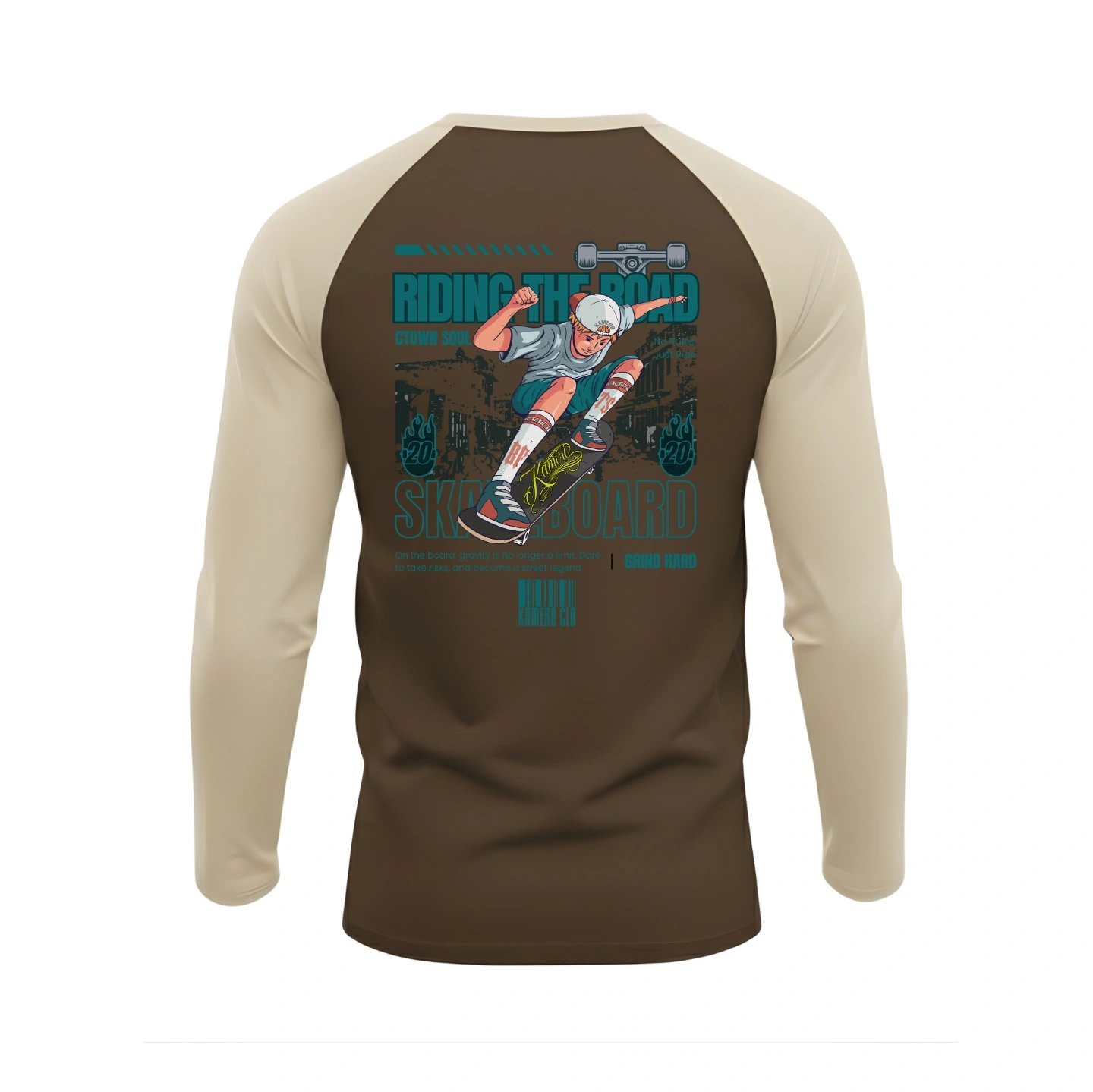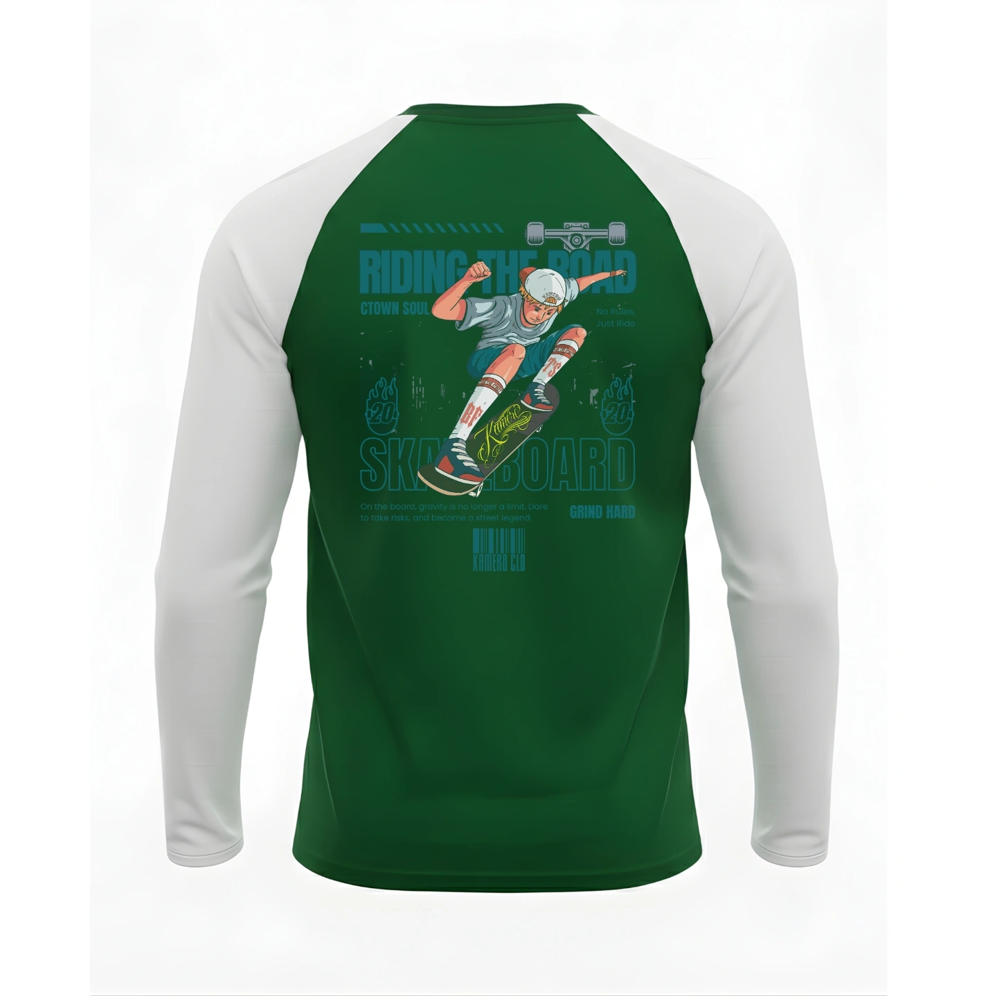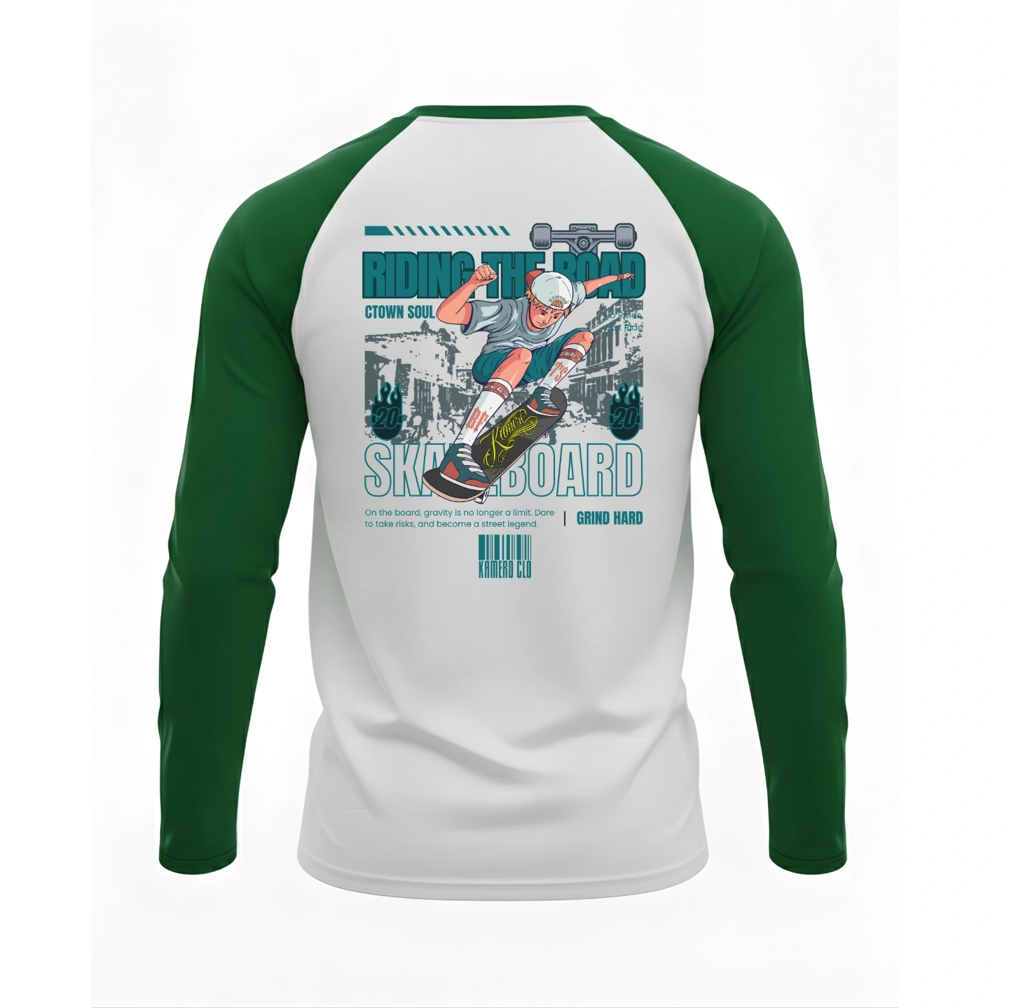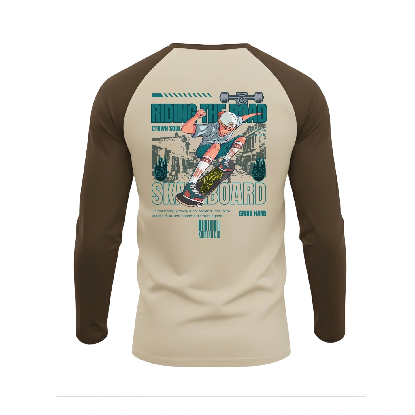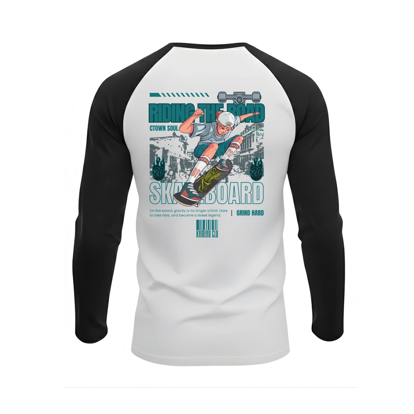 The Kamero Skateboard Baseball long sleeves captures the raw energy of street culture—designed for riders, rebels, and anyone who lives life with motion.