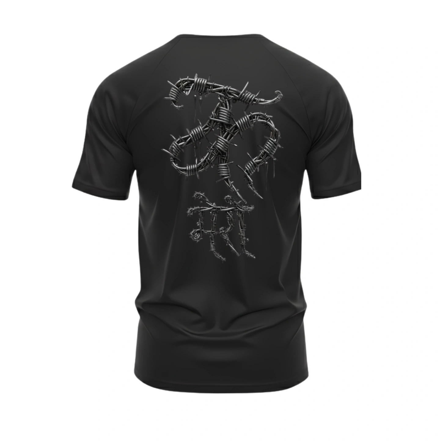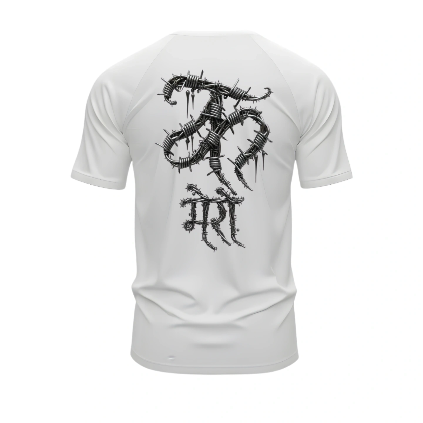 Featuring a striking barbed-wire style typography on the back, this design represents strength, rebellion, and untamed identity.