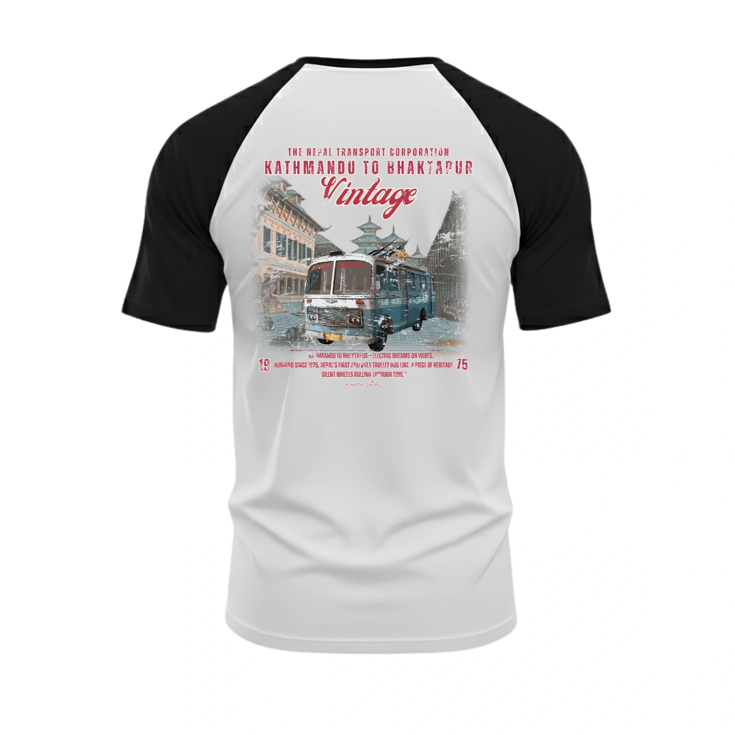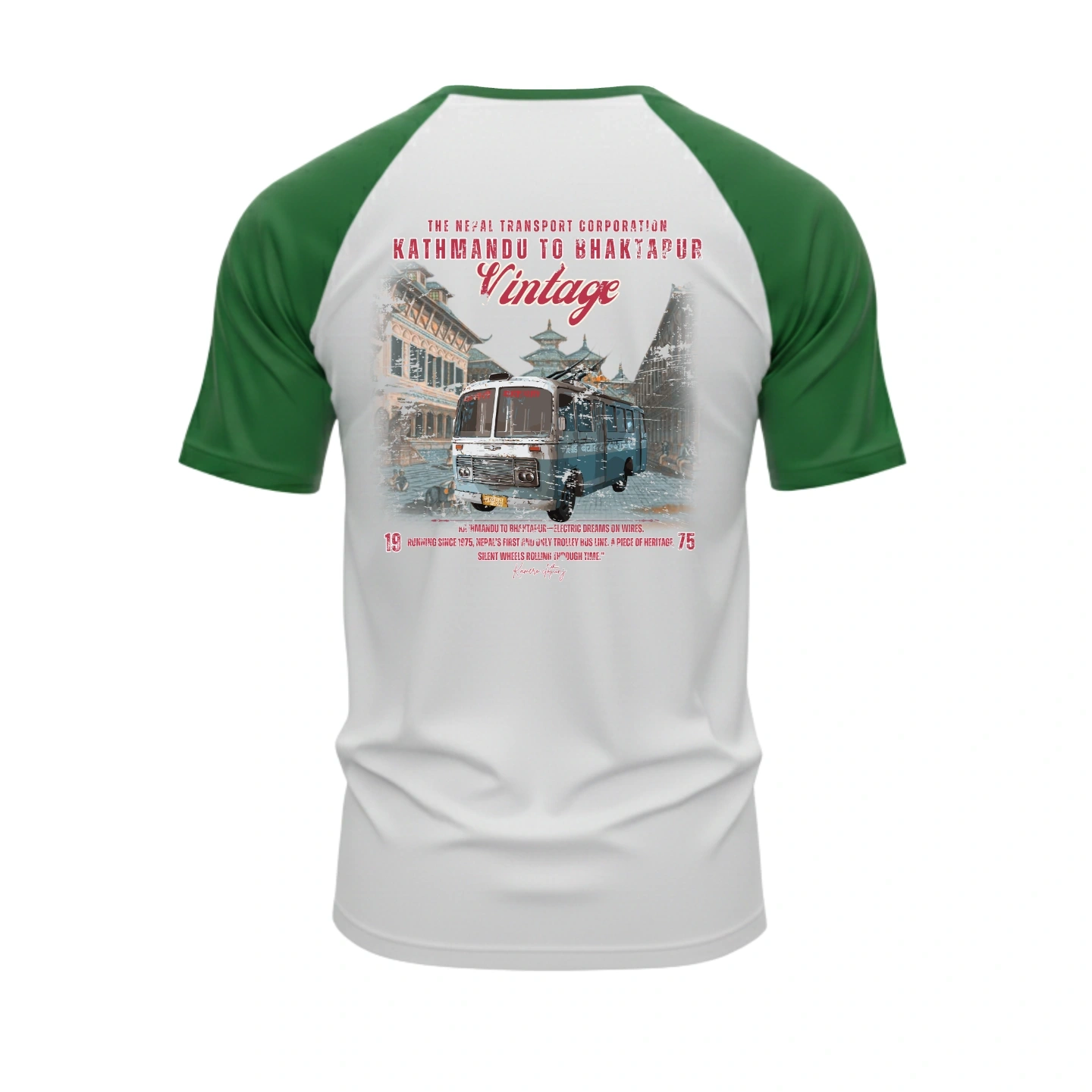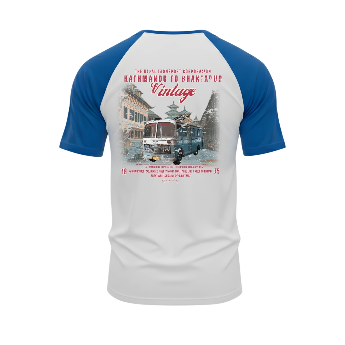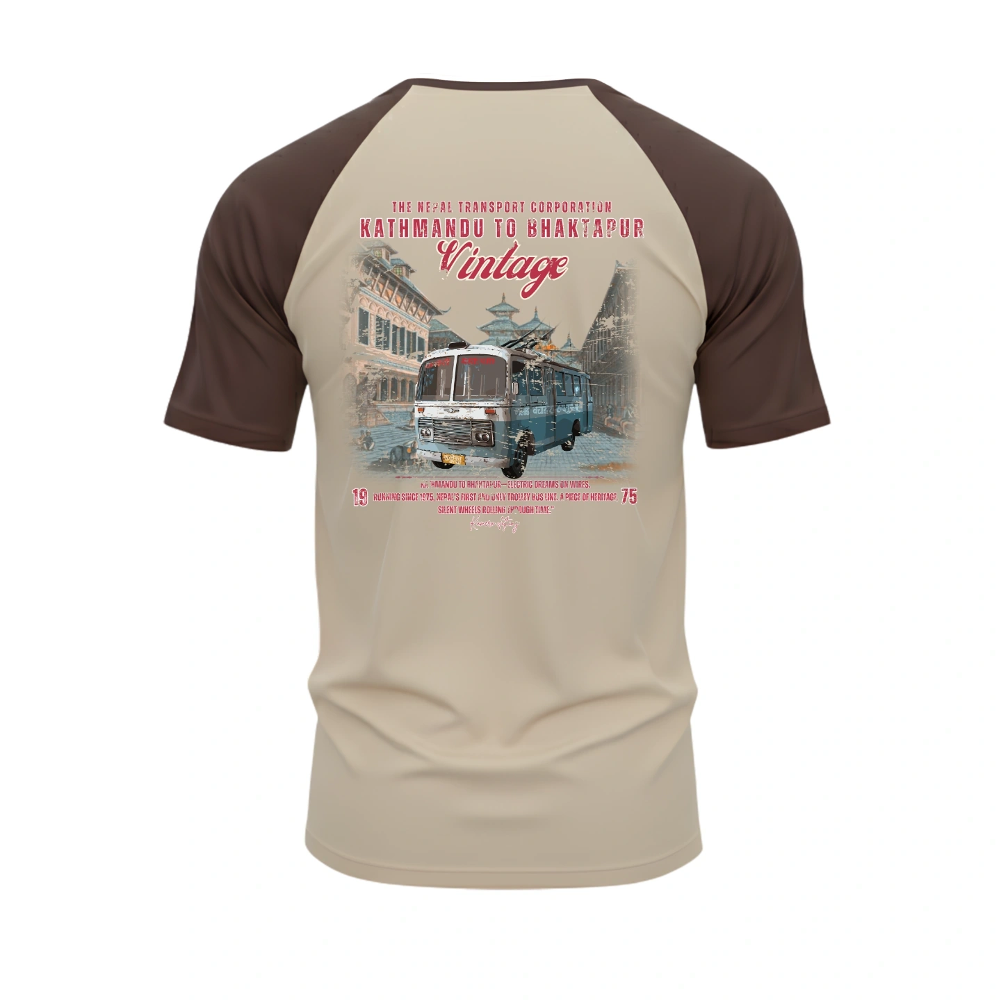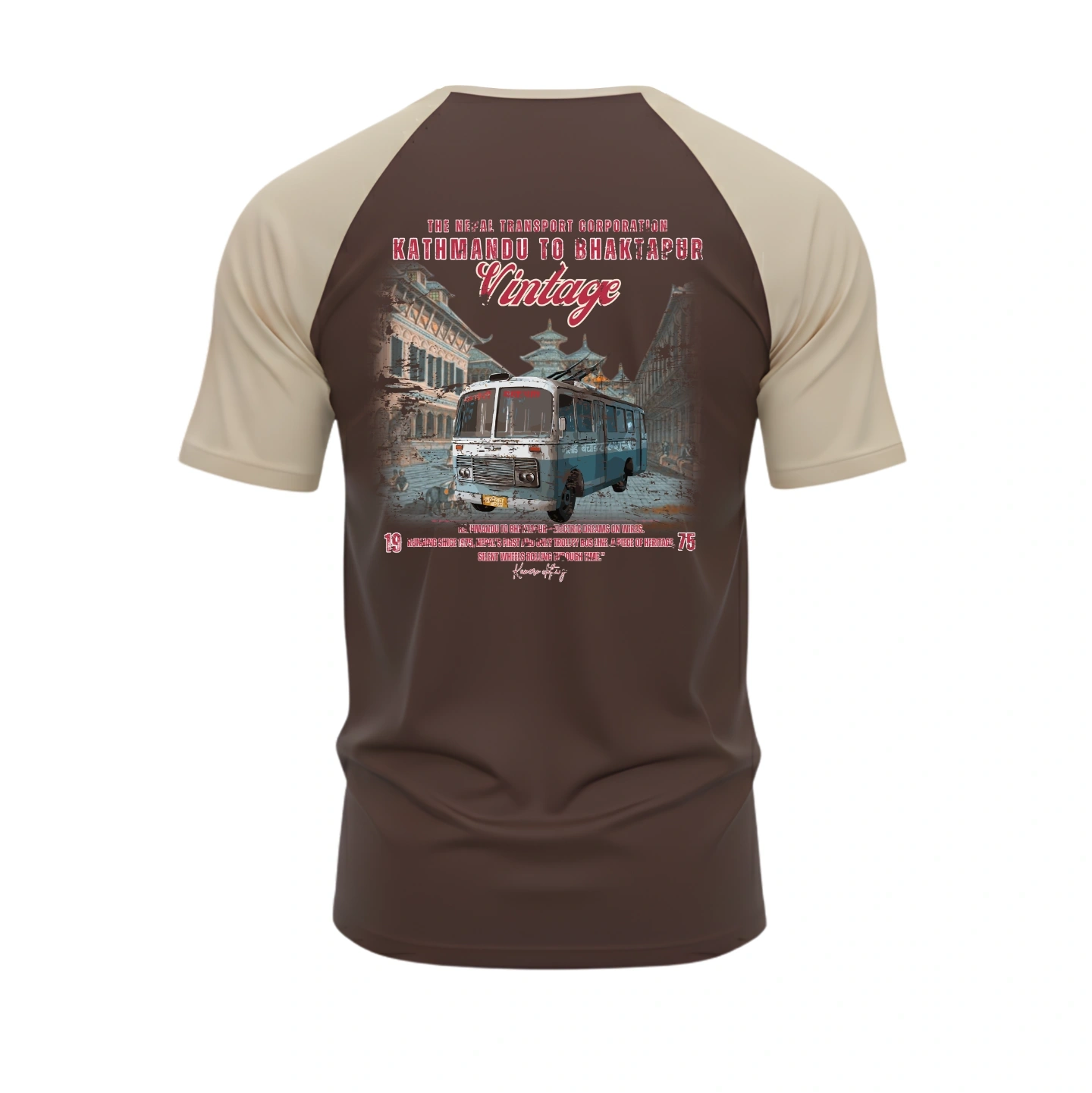 Step into Nepal’s vintage transport history with the Kamero Vintage Trolly Baseball half sleeves