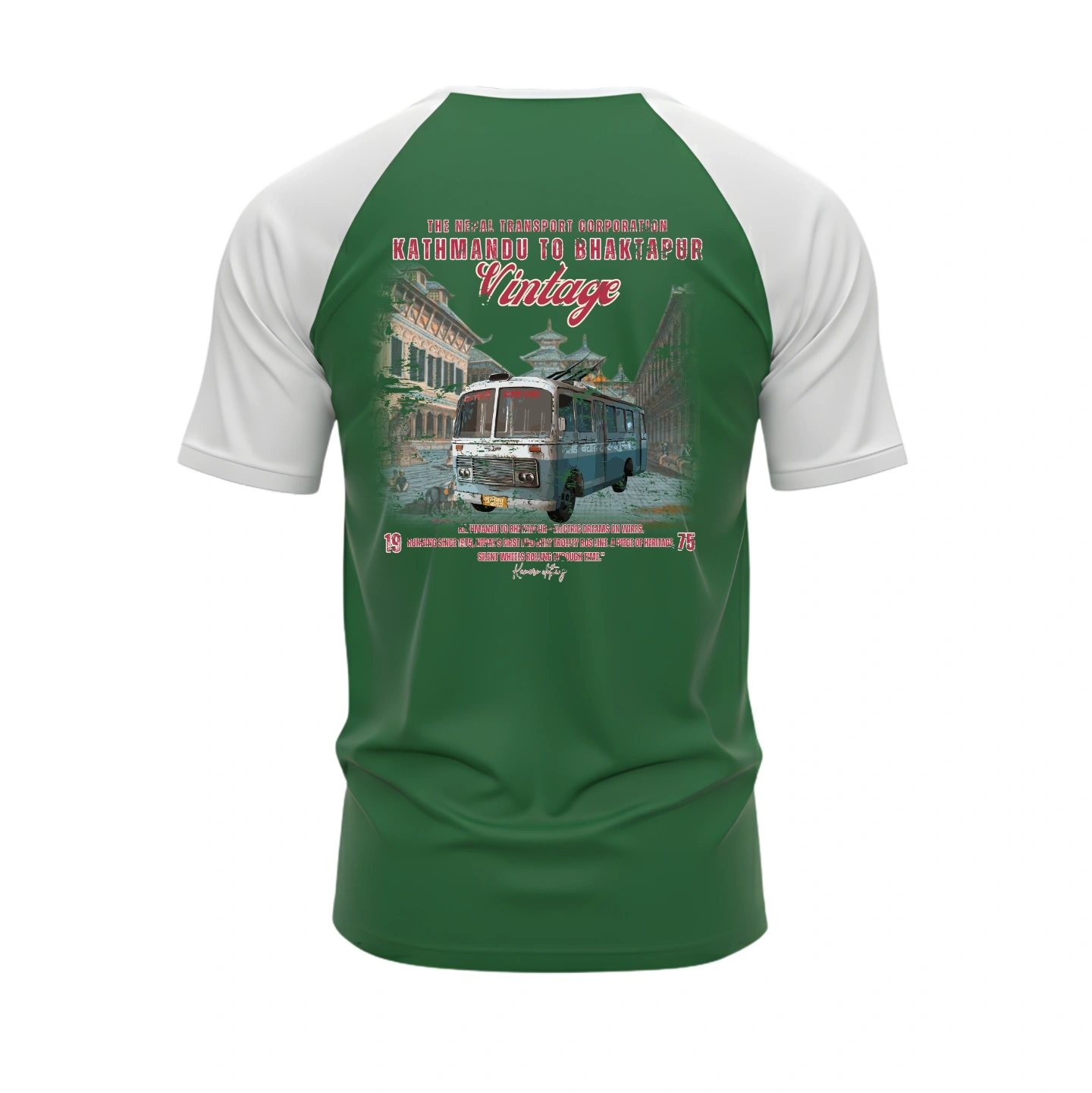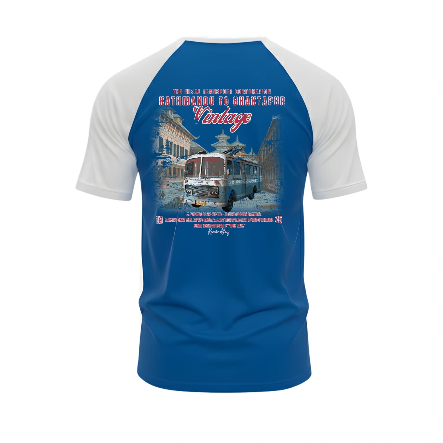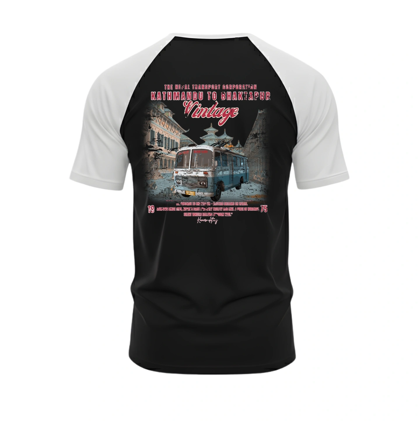 Featuring the iconic Kathmandu to Bhaktapur transport bus, this design blends classic Nepali heritage with bold streetwear style.