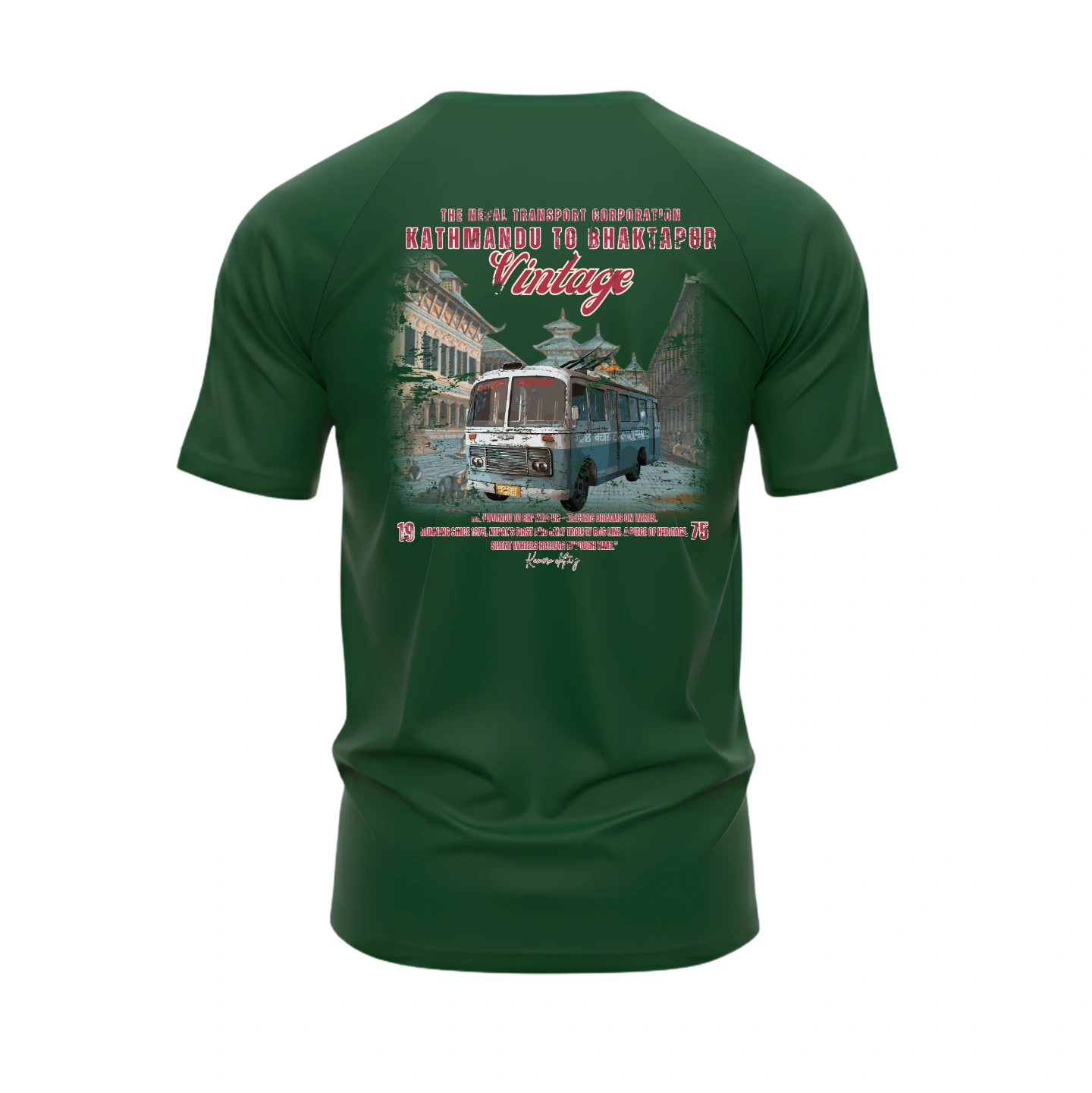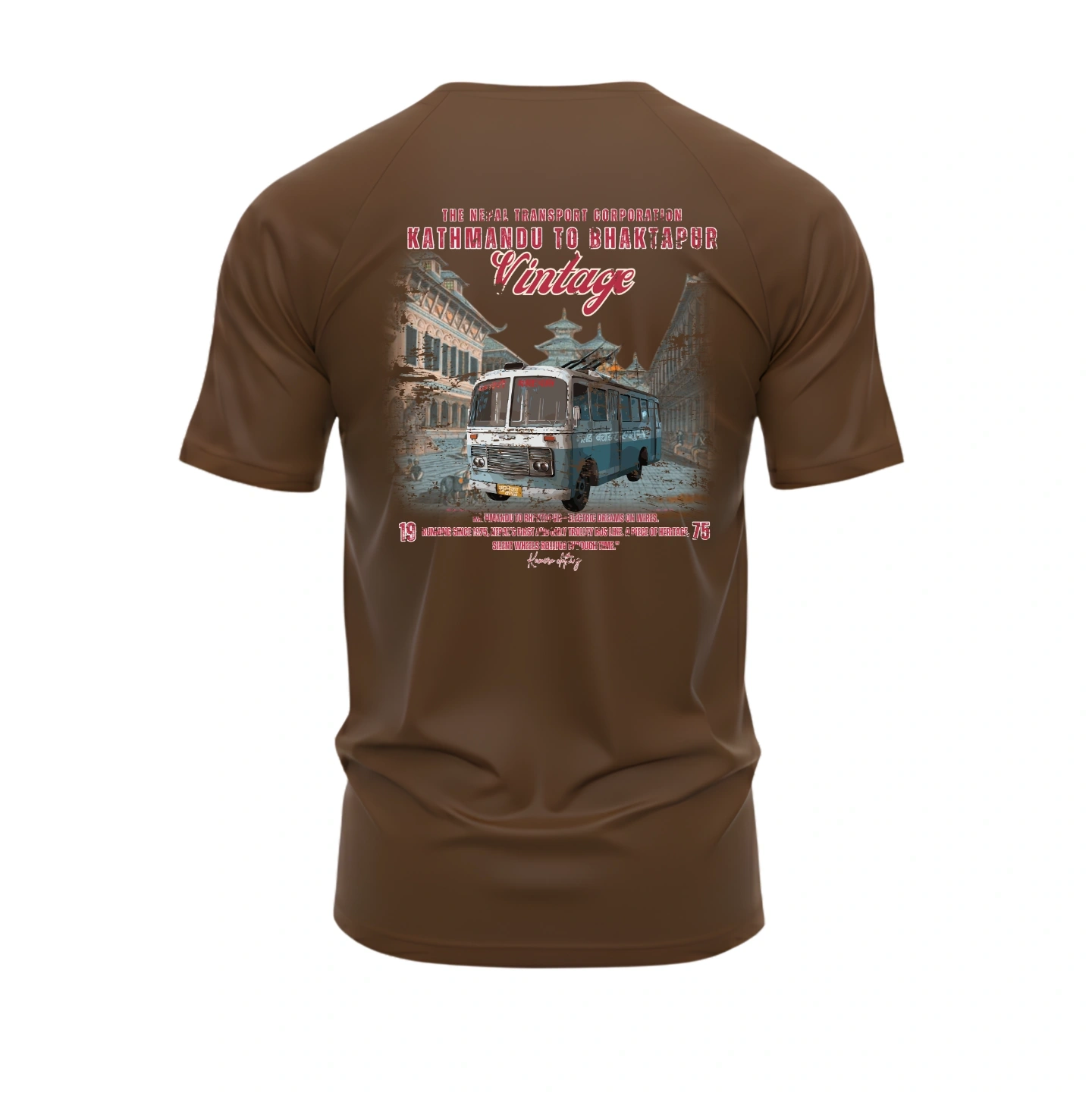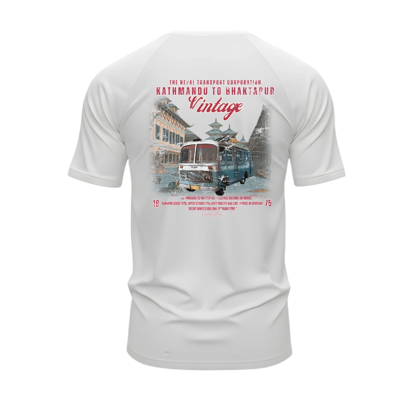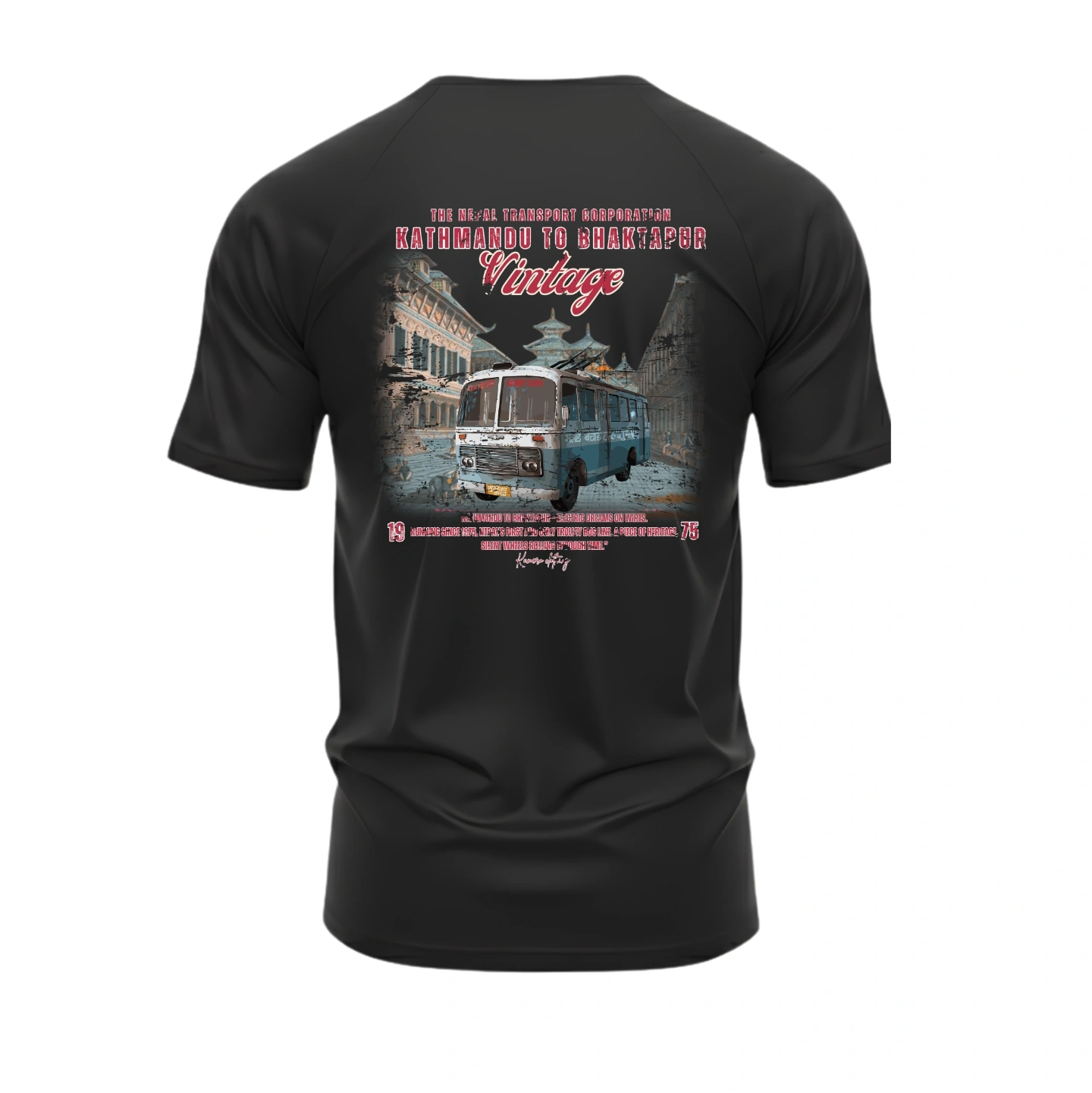 Featuring the iconic Kathmandu to Bhaktapur transport bus, this design blends classic Nepali heritage with bold streetwear style.